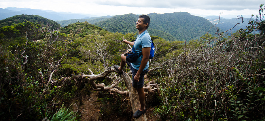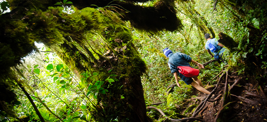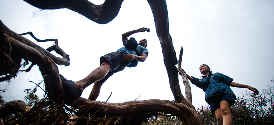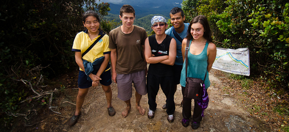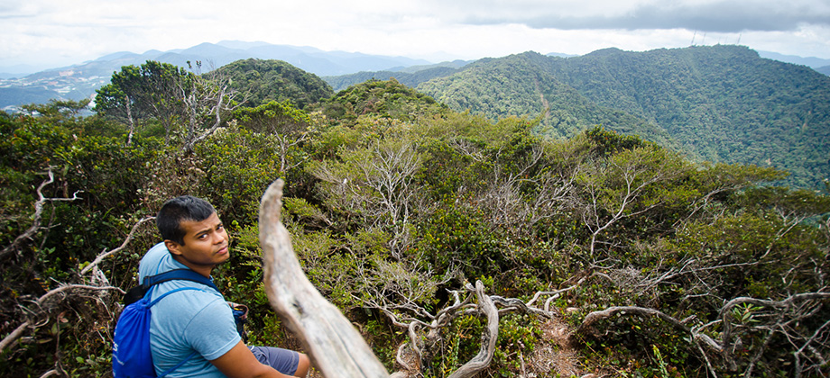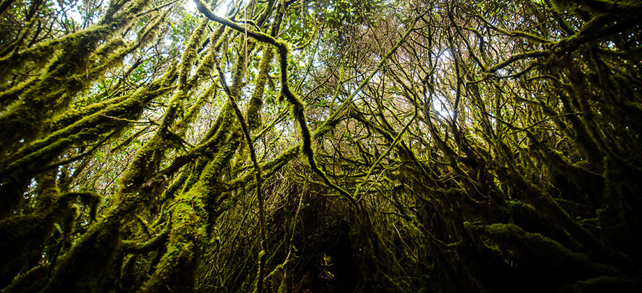 Approximately 5 minutes before reaching the peak of Mount Irau, we found ourselves in a grove of sorts that was encompassed by long, spindly branches that stretched towards the sky. The most remarkable thing about these branches was the sheer thickness and abundance of the epiphytic moss that ended up casting an eerie yet somehow tranquil vibe to the area. I found it somewhat bizarre and a little hard to describe so hopefully the 360 panorama that I have embedded below will do it more justice.