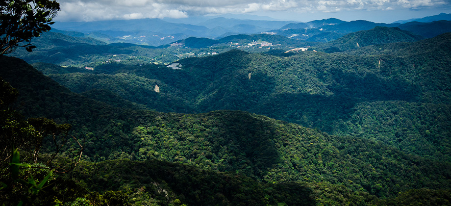 The path that lead onwards to the peak of Mount Irau lay just to the left of the path that lead to Mini Irau and could easily have been missed had it not been for the trail markers that were visible. From that point there was a slight descent, followed by an immediate ascent of 128m that stretched just over a kilometre. The trail had a few gaps in the foliage on the left where one could glimpse the rolling hills that lay to the south with the dark shadows cast by the clouds above moving almost lethargically across them.