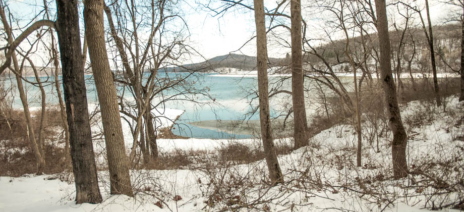 There are three main trails at Round Valley Reservoir: the Pine Tree Trail and the Family Hiking Trail that lie to the west of the south carpark and are very short (1.6 km and 0.8 km loops respectively) that pass through pinewood (Pinus sp.); and the much longer 14.5 km-long Cushetunk Trail, which was the one that we were to snowshoe on. The Cushetunk Trail heads eastwards from the south carpark instead and makes an almost complete loop around the reservoir (no trails completely circle the reservoir), passing by the wilderness campsites along the way. This trail has been described as "rugged, rocky and steep", albeit I found it to be extremely tame (so much so that you can even mountain bike on it) compared to the occasionally impenetrable forest terrain that I am far more used to. This was, quite literally, a walk in the park.