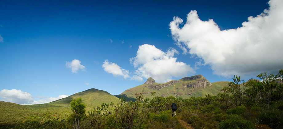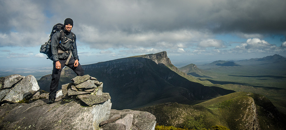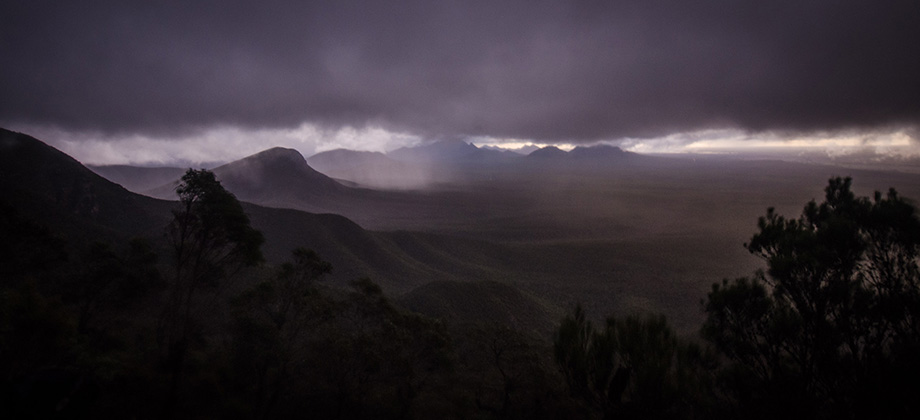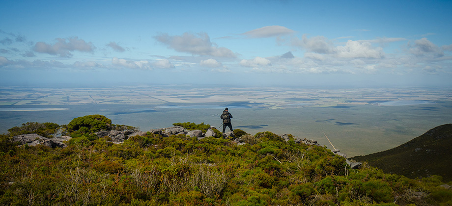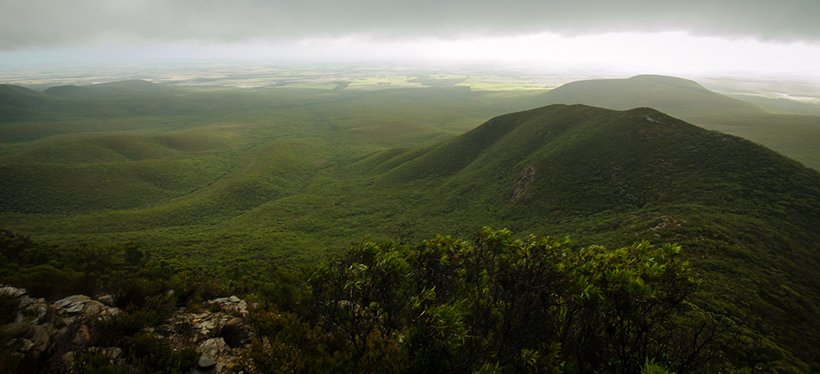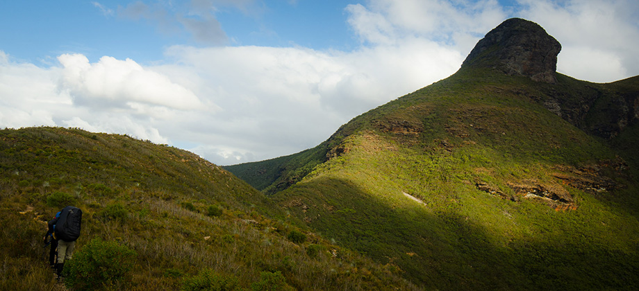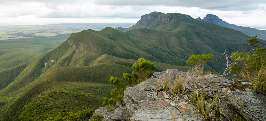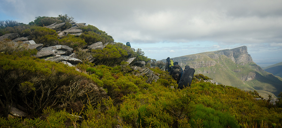 The route carried us through a narrow cleft that split the rock castle right down the middle. A short descent down to the sheoak (Allocasuarina sp.) col before the ascent to Isongerup brought us to another clearing that could have been used as a camp site. After passing through the sheoaks, the ascent up to the peak of Isongerup North became much easier as the shrubbery began to open up, leaving us with some astounding views of the arrows that we had left behind us.