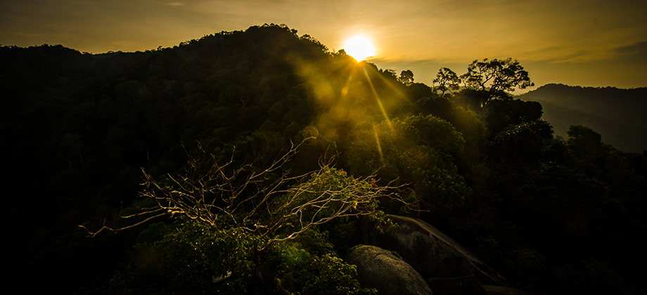 After about half an hour, we came to the first campsite named 'CP1, CP Pondok' which was basically a small clearing with nothing of interest so we pressed on. In the dark, features that could be found on the trail went unnoticed and the only variation that was noticed was when the narrow beam of the torch came across a change of incline. Soon after though we came upon an extremely large boulder that caused the trail to veer sharply to the left that lead to a clearing for the second campsite, 'CP2, CP Camp', and a set of 5 ladders that had been propped up on the rocks and secured in place to ease the ascent. The ladders seemed secure enough but could pose a challenge for anyone with acrophobia. As monkeys awakened with whoops, hoots and howls in the distance, we reached the top after having trekked for 1 hour and 24 minutes, covering a distance of two kilometres. The time was 06:40 and the barometric altitude was registered to be 799 m on my Suunto Ambit.