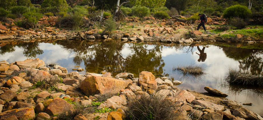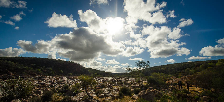 Around four kilometres in, the grass seemed a lot healthier, greener somehow. As I rounded a large boulder, I saw the trickle of a small waterfall above rocks that were stained with black algae, and felt the air laden with moisture. Small, Drosera hirsuta sundews lined the bottom of those black rocks, appearing almost dainty-like, but harbouring a malicious intent: these tiny, carnivorous herbs use sticky fluid on their tentacles to capture small insects, before the enzymes in the fluid partially dissolve the body to provide them with nutrients.